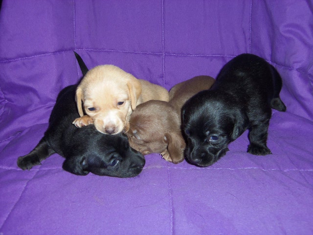 All of my dogs are raised on good quality food. Don’t just get a dog; buy some dog food, and there you go. Please watch what you give your new puppy or dog. Miniature Dachshunds have different dietary needs than a Chihuahua or Great Dane. Dachshunds should NOT be free-fed unless you know how to slowly wean them onto it. Otherwise, they have a habit of overeating; overeating means the dog is overweight, and being overweight implies a lot of health issues. All Dogs here, though, are raised with free feeding, so if that is the route you want, we just made it easier.